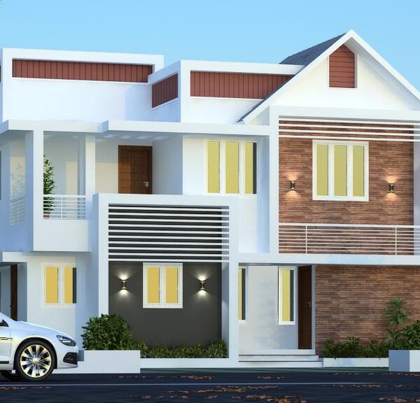 This Project is proposed to one of our valuable client Mrs.Kavyasree. The project is situated Plot No.29B &29C, Chathamkulam garden, Near Lulu, Kadumthuruthy, Yakkara(po),Palakkad. The client proposed 1562 sqft with 6.62 cents plot. Ground floor consists sitout, living area, dining hall, kitchen, work area and 2 bedrooms with attached bathrooms. First floor living area, dining hall, kitchen, two bedrooms with attached bathrooms, two balcony and two open terrace. The plan is fully customised by the requirement of client . Estimated budget is 34 Lakhs.